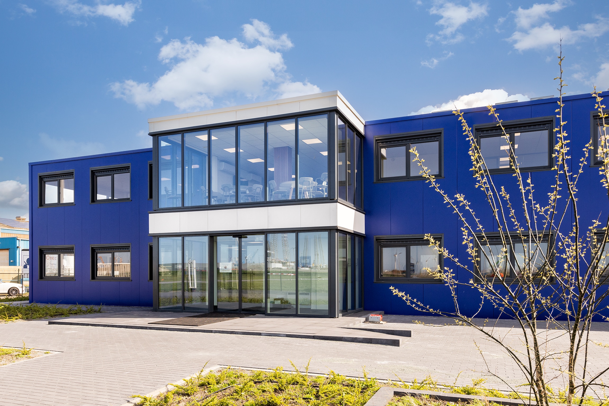 Een goed voorbeeld hiervan is dit kantoorgebouw in Vlissingen. Dit pand is volledig opgebouwd in de huisstijl van de opdrachtgever en kreeg een permanente, hoogwaardige uitstraling. Vanwege de ligging aan zee is gekozen voor een speciale gevel met coating die bestand is tegen wind en zout. De entree, uitgevoerd als vliesgevel, vormt een echte eyecatcher en laat zien hoe stijl en functionaliteit perfect hand in hand kunnen gaan.
