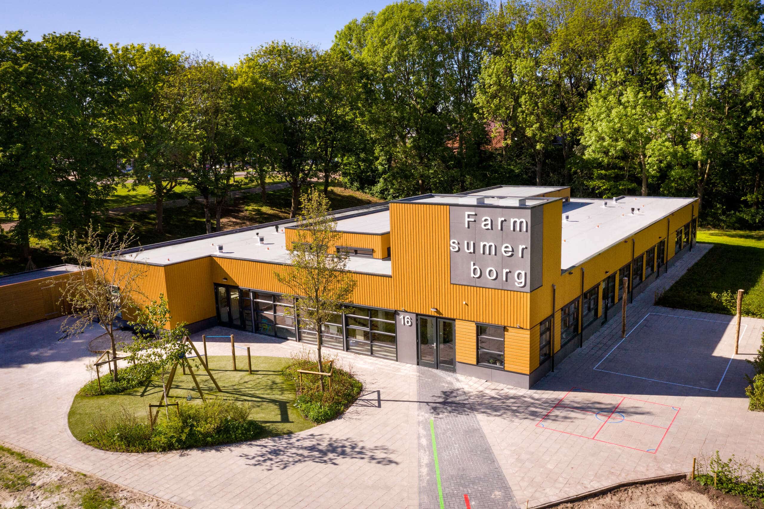 L’école primaire Farmsumerborg et De Springplank, la crèche de Kids2bhebben, ont pris leurs quartiers dans cet immeuble semi-permanent. L’ancien bâtiment du Rengersborg et De Springplank (crèche) ont été démolis. C’est là que le nouveau centre pour enfants semi-permanent a été construit. Le choix s’est porté sur une école spacieuse avec un caractère ouvert pour créer un cadre reposant. La configuration de l’école est basée sur des locaux en vis-à-vis et une salle de travail très lumineuse. Les locaux sont reliés de manière transparente à la salle de travail. Le bâtiment est bien isolé et entièrement électrique. Il est également équipé d’une pompe à chaleur, de fenêtres électriques dans la mezzanine et de stores électriques tout autour.