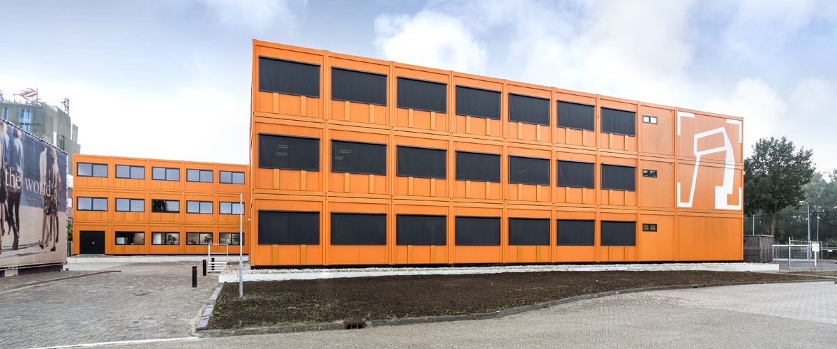 Avant le début de la nouvelle année scolaire, un bâtiment polyvalent a été réalisé en six mois avec l’idée de pouvoir en utiliser une grande partie cette année encore pour l’enseignement, et par la suite à des fins administratives. La fabrication a eu lieu dans le hall qui venait tout juste d’être ouvert à Eemshaven, ce qui a permis de tout réaliser très rapidement.