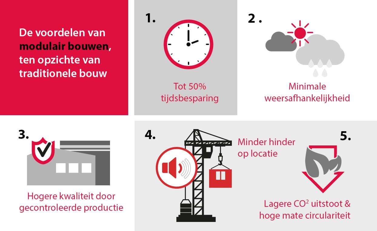 De voordelen van modulair bouwen zijn groot, zeker als je het vergelijkt met traditionele bouw: