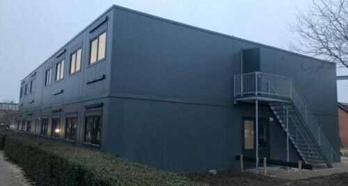 Twee weken geleden is Jan Snel begonnen met het grondwerk, zodat vorige week de units al geplaatst konden worden. In slechts twee dagen is het gebouw in elkaar gezet. De eerste dag is de begane grond neergezet en de tweede dag is de 1e verdieping er al op geplaatst. De rest van de week zijn de afwerkingen aan het gebouw afgerond, zodat vandaag het gebouw kan worden opgeleverd. De afwerkingen bestonden uit het aansluiten op het water, riool en elektra. Daarnaast is het gebouw nog voorzien van een data-installatie en een brandmeldinstallatie- en inbraakinstallatiesysteem. Daarmee is het pand klaar voor gebruik.
